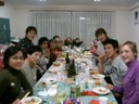 5クラス合同で忘年会。地域の集会所でpot luck partyでした。 大学生から70代までの老若男女20名あまり。 レッスンではWhat's new?でたくさんプライベートな話を聞くので わたしにとっては1人ひとりが個性豊かないろいろな才能にあふれた方々です。 同じクラスの中だけではもったいない話も多々。 今日はクラスを超えて集う絶好の機会でした。くじ引きで席替えを2回しました。 振り替えレッスンで他のクラスをのぞいたり イベントで会ったことがあったり 噂だけ聞いたことがあったりで クラスが違っていても同じ英語を学ぶ同士 すぐに話が盛り上がったようでした。英語オンリーにすると言いたいことが言えなくて 欲求不満になってしまうといけないので きょうは日本語でOKです。 と言ったにもかかわらず けっこう英語がとびかっていました!! しかも全員が自己紹介は英語でした!去年は「英語で自己紹介」と言ったら みんな嫌そうだったので 今年は強制しなかったのがよかったのかも。年末の超多忙な中、みんなすばらしいお料理を持ち寄ってくれました。最後に「ビンゴでプレゼント争奪戦」2次会はカラオケ(Shidax)に移動。 英語の歌中心に歌いまくりました。 |