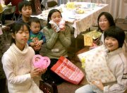 とっても嬉しそうな表情をパチリ! 子どもたちは別テーブルで子どものプレゼント交換会。 |