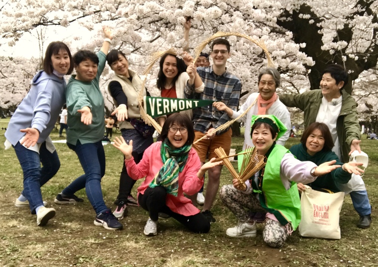 昨年コロナの中、北海道に来日したPhilとTessieに満開の桜の小金井公園で再会しました。 2019年アメリカバーモントプレゼンツアーメンバー全員が集合し 懐かしい思い出話に花が咲きました!コロナ以来、大勢で集まることができず、まったくイベントを開いていませんが この日は各自弁当持参で、桜の木の下、安全に会食。 その後、ジョナサンでお茶でした。Phil とTessieとは、バーモントのSt.Mike’sに留学中にキャンパスで知り合いました。 バーモントプレゼンではメンバーみんなと会って、Philはプレゼンにもギタリストとして参加してくれました! その後二人は結婚して、めでたくALTとして、夢の北海道(二人ともスキーヤー&ボーダー)に赴任。 私たちもやっと日本での再会を果たしました。今度は北海道で会いたいと計画中です! |