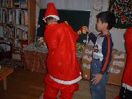 ★ Sing and Hit "Jingle Bells"♪Jingle Bells の歌に合わせて、歌に合わせて絵カードを細長く丸めた新聞紙でたたきます。 ★ Santa Around The World 2チームに別れ、それぞれサンタ役を決めます。 サンタ以外のメンバーは1列に並び、先頭の人が先生のところに来て 指示を小声で聞きます。 "It's Alaska here. It's so cold. Put on the coat." 伝言ゲームのように小声でサンタまで伝えます。 "Put on the pants." "Put on the gloves."などなど |