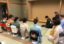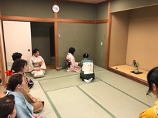 畳の歩き方、お茶碗の扱い方、お茶のいただき方基本的なことですが 外国人にも英語で紹介できるように練習しながら。 |