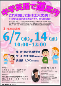 『中学英語で道案内』これで英語で道を聞かれても焦らない! 西部地域センタ―(東久留米市滝山)にて |