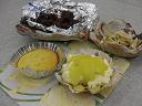 今回の「おやつ」はキウイのタルト、マドレーヌ(甘夏ジャム入り)、生チョコ全部手作りです。 |