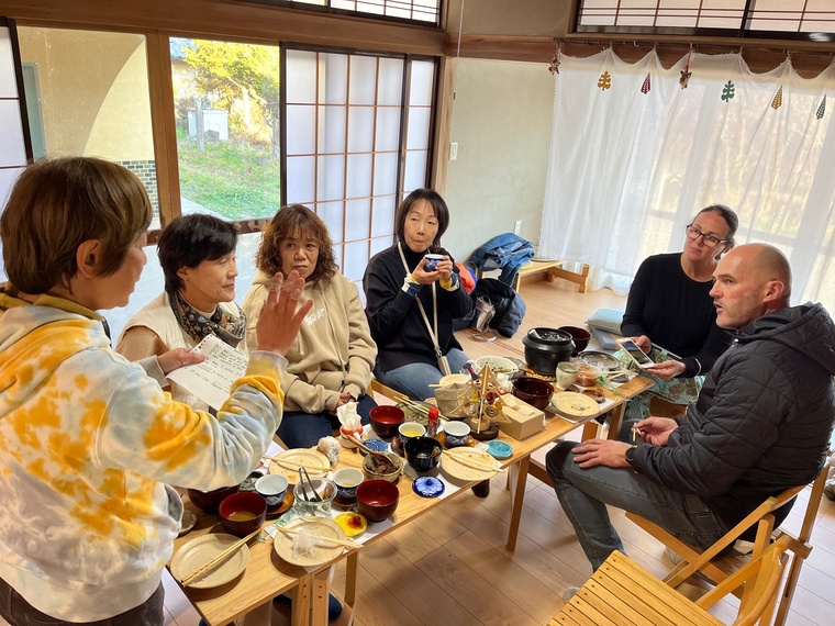 炊飯器も電子レンジもないスローライフをエンジョイされています!Bobbyにも釜で炊いたあつあつのご飯のおにぎり体験をしていただきました! |