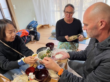 オーストラリア人の夫妻と合流しました! Sally-Anne と Bobbyは日本は3回目。 最初の来日の時に出会い、去年の再来日の時にはウラウライングリッシュのプレゼンに来ていただきました。 今回は3週間の旅の最後にお会いすることができました。 |